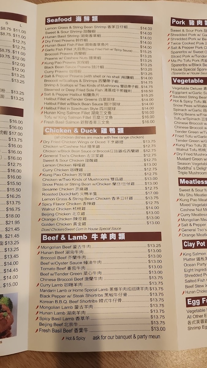 The menu at Chang's Kitchen Restaurant features a broad selection of traditional Chinese dishes organized into several main categories, catering to a variety of tastes and preferences. Visitors can find options ranging from poultry and meat dishes to fried rice and noodle specialties.